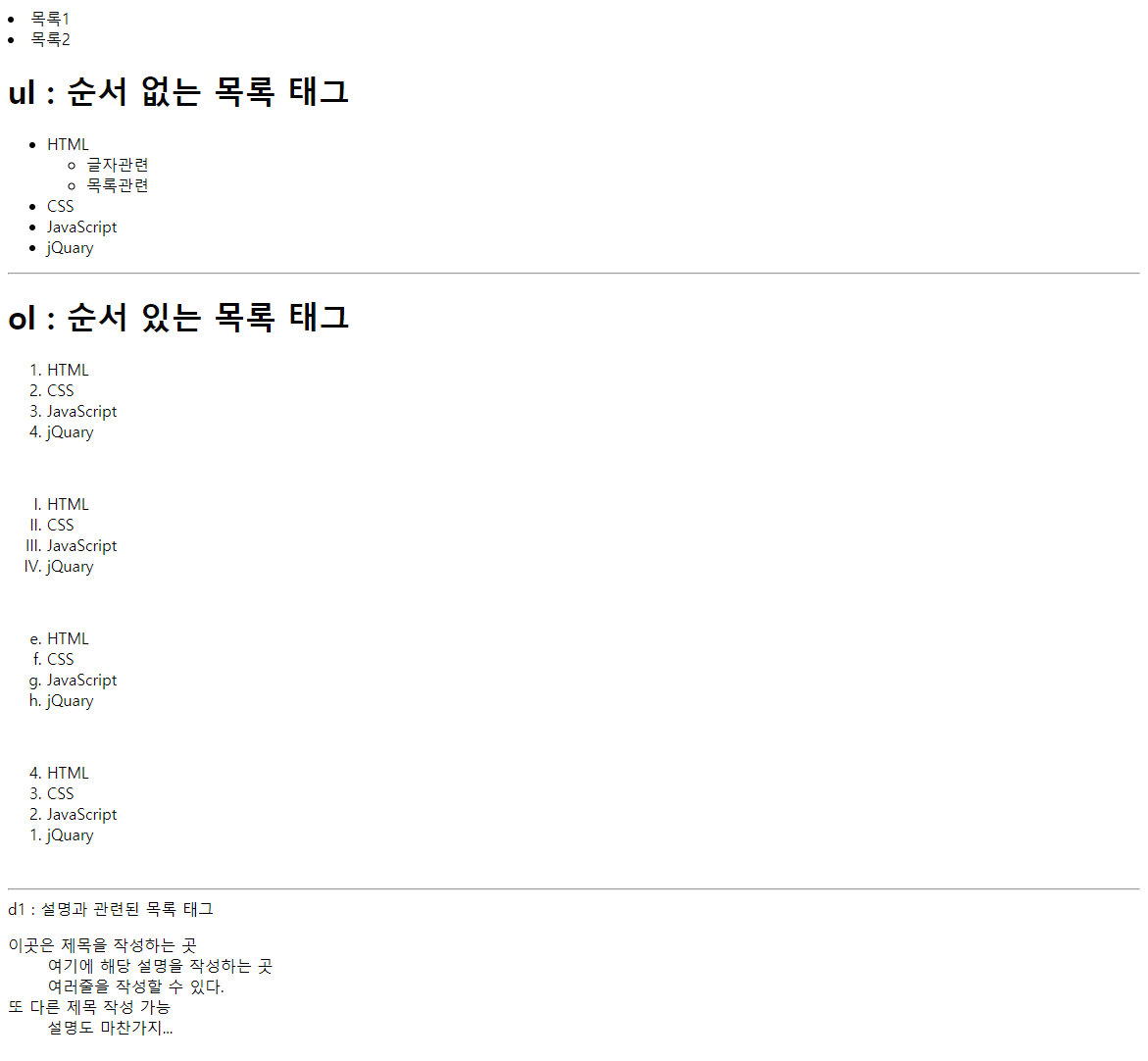 <hl>d1 : 설명과 관련된 목록 태그</hl>