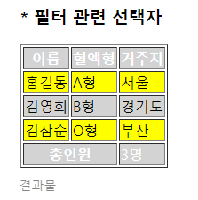 - 기준이 되는 요소 중에서 특정 요소만을 걸러서 선택해주는 메소드