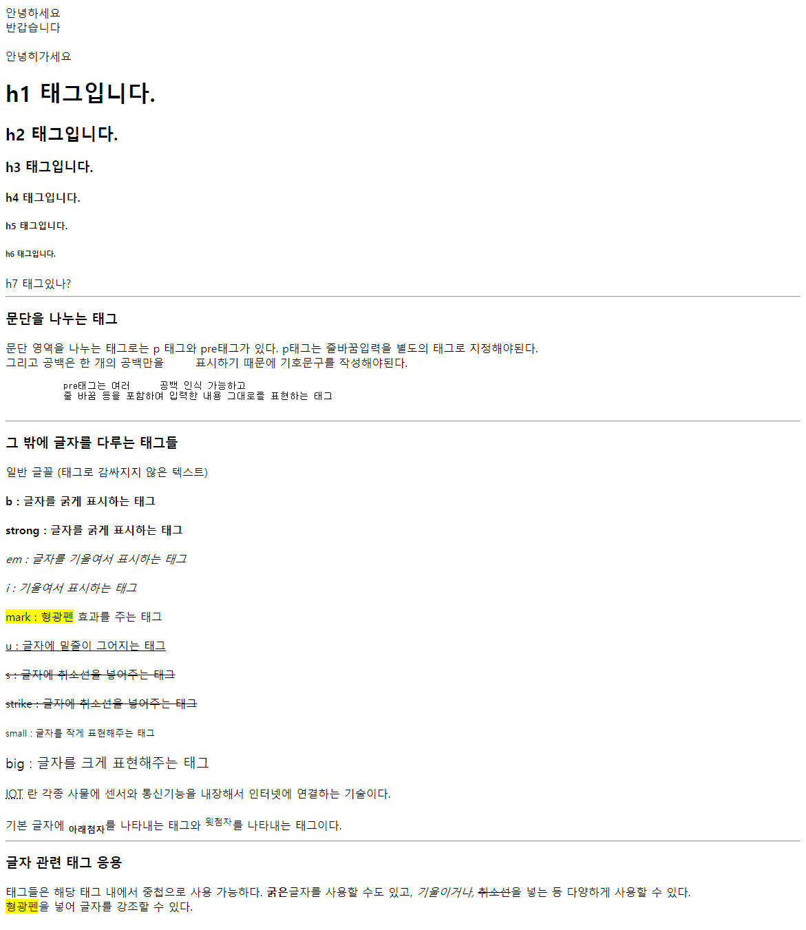 <h3>그 밖에 글자를 다루는 태그들</h3>